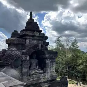 Climbing to the top felt like a spiritual journey. As I ascended, I passed through terraces representing the stages of human existence, leading to the circular stupa-filled summit—a symbolic representation of Nirvana. From here, the panoramic views of lush greenery and distant volcanoes were breathtaking, adding to the temple’s serene ambiance.