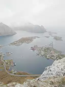 I have to say, Bøstad is truly a hiker’s paradise! There’s a trail behind the museum that leads straight to the seaside. On clear days, you can see the snow-capped mountains on the opposite shore reflected in the water. We encountered rainy weather, which made it feel even more atmospheric, with mist swirling around like stepping into a Nordic myth scene🌊 A 15-minute walk takes you to the legendary "Southwest Corner," where there’s a cluster of rocks perfect for photos.