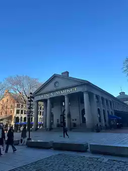 Next, stop by Quincy Market 🍔🧁, a vibrant foodie haven offering clam chowder served on bread 🍞 and a variety of adorable desserts 🍦🍩. A short walk will take you to stunning views of Boston Harbor, perfect for a romantic sunset. 🌅