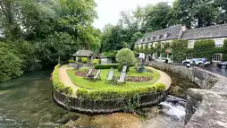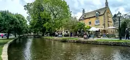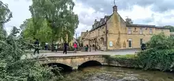 Burton-on-the-Water is a village in the Cotswolds district of Gloucestershire in southwestern England (Figure 1). It is located in a wide and flat valley with the River Windrash running through it. There are five stone arch bridges on the river (Figure 2), which were built between 1654 and 1953, so they are called the "Venice of the Cotswolds" (Figure 3).