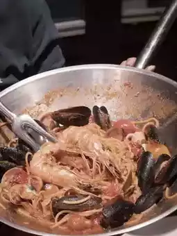 The large pan of pasta—chewy noodles, a rich sauce, large shrimps, mussels, and a hint of herbs—tasted like an Italian in a Romanian kitchen. It was truly as delicious as Mark had said.