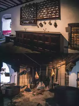 The huge fireplace was big enough for three people, and blackened copper pots hung on iron hooks. The tour guide pointed to the stone mill in the corner and said: "The nobles eat white bread, the common people eat rye, but the worst is the miller - he inhales too much dust and will not live past 40."
