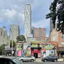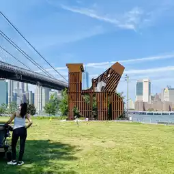 A place where hipsters gather in the eastern riverside area between Brooklyn and the Manhattan Bridge