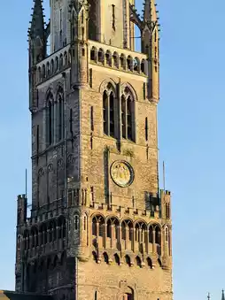 Bruges' Belfry towers over the city center, a giant guardian, bearing witness to the medieval town's centuries of splendor and transformation. Standing at the foot of the tower, the tower's red brickwork and intricate carvings are breathtaking, each floor revealing the depth of history and the craftsman's ingenuity.