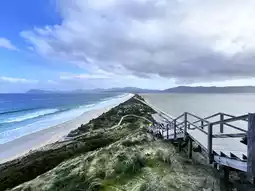 Upon arrival, my first stop was The Neck, a narrow isthmus connecting North and South Bruny Island. Climbing up to the lookout, I was greeted by breathtaking 360-degree views: the azure Tasman Sea on one side and the serene bay on the other, with waves lapping against golden beaches. A nearby trail led to a penguin habitat; though spotting the little penguins during the day was unlikely, the informative signs about the area's biodiversity piqued my curiosity.
