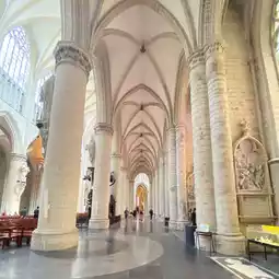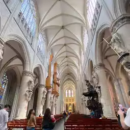 Inside, the cathedral is just as impressive, with its grand vaulted ceilings, stunning stained glass windows, and beautiful stone carvings. One of the most remarkable features is the 16th-century pulpit, an elaborate wooden structure depicting scenes from the Garden of Eden. The cathedral also houses the royal crypt, where members of the Belgian royal family are buried. Visitors can admire the intricate stained glass windows, which illustrate stories from the Bible as well as key moments in Belgian history.