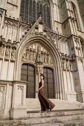 Belgian National Cathedral, a twin-towered Gothic building with exquisite sculptures and painted museum shelves.