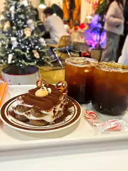 When you enter the cafe, you will be impressed by the beautifully decorated tree and the cozy interior.
