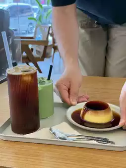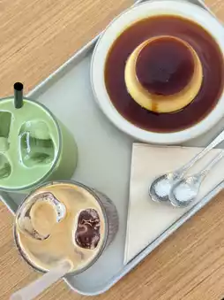 I ordered a matcha latte. It's the best matcha latte I've ever had. You have to try it. Plus, pudding! 🍮💚