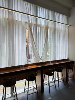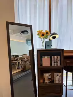 The cozy, wood-toned interior creates a sense of comfort. Located on the first floor, the view is a bit lacking, but the chiffon curtains obscure the view, making it even more captivating. 🤍
