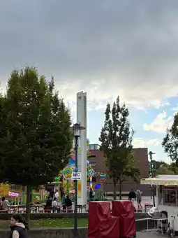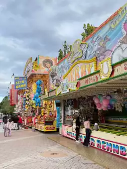 🎪 A huge fairground in the heart of Bühl: colorful rides, a giant Ferris wheel, street stalls, and food tents lining the pedestrian core.