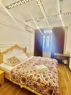 The rooms feature bed covers adorned with traditional Suzani embroidery 🛌, adding a touch of local craftsmanship.