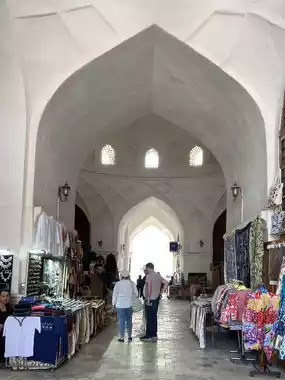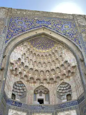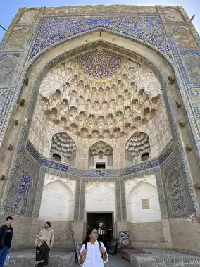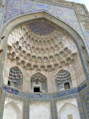 The Abdul Aziz Khan Madrasah, a stunning example of Timurid architecture in Bukhara, is a testament to the city's rich cultural heritage and historical significance. As I approached the madrasah, I was struck by its majestic facade, adorned with intricate tilework and ornate mosaics, which seem to reflect the region's artistic prowess. The madrasah's history is steeped in tradition, having served as a center of learning and spiritual growth for centuries. I marveled at the beautiful calligraphy and delicate decorations that adorn the madrasah's interior, a testament to the skill and craftsmanship of local artisans. The madrasah's stunning architecture and peaceful atmosphere make it a must-visit destination for anyone seeking to experience the authentic essence of Bukhara's cultural legacy. Its grandeur, history, and cultural significance make it an unforgettable part of any Central Asian itinerary. The madrasah's beauty is truly captivating.