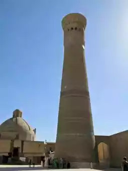The Kalyan Mosque (more accurately pronounced Kalon, its original name meaning "large" in Persian) was built in 1514 during the reign of Ubaidullah Khan. It is the largest mosque in Baku and one of the largest in Central Asia. Its facade faces east, directly opposite the Mir-i Arab Madrasah.