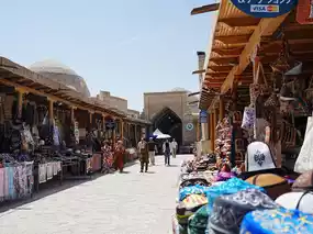 Located in Bukhara's old town, these domed markets are lined with souvenir shops offering Uzbek crafts, embroidery, spices, and other handmade goods.