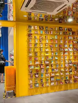 * The shop also features unique displays such as a “cup noodle wall”, halal-certified snacks, blind boxes, and trendy travel essentials.