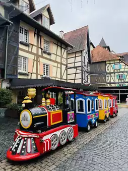 One of the cutest finds during my visit was this adorable mini train set parked right in the heart of the village. Kids were lining up for a ride, and honestly, I felt tempted too! The bright colors and nostalgic vibe made it a fun sight for both kids and adults.