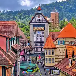 Colmar Tropicale in Bukit Tinggi, Malaysia, feels like stepping straight into a European storybook village. Inspired by the town of Colmar in France, this charming resort is filled with colorful half-timbered buildings, cobblestone streets, and flower-decked balconies that make every corner picture-perfect. The cool mountain breeze adds to its charm, offering a refreshing break from the city’s hustle. Visitors can enjoy cafés, little shops, and scenic viewpoints that transport you to a different world. With its blend of French charm and Malaysian hospitality, Colmar Tropicale is more than just a destination—it’s an enchanting experience that makes you feel like you’ve traveled to Europe without leaving Asia.
