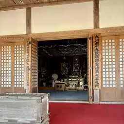 Nationally designated Important Cultural Properties: Wooden statues of Taroten and two children, and a bronze Lotus Sutra are housed in the storage room. Admission fee: ¥500.
