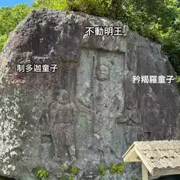 These rock-carved Buddha statues carved into a rolling rock🪨 in the Nagaiwaya River are said to have been created during the Muromachi period, and "Kawanaka Fudo" refers to the Fudo Trinity.