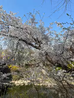 The sound of the water flowing along the stream and the cherry blossoms combined to create an even more charming atmosphere. Rating: 5/5