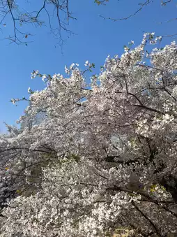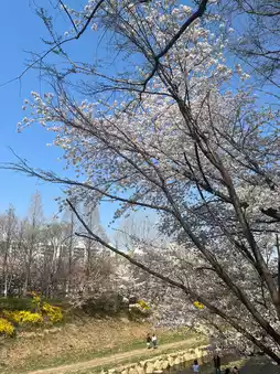 The cherry blossoms that were in full bloom along the cherry blossom road seemed to cover the sky, and the sight of the petals falling like snow in the spring breeze was really beautiful.