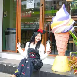 A small homemade yogurt ice cream shop in a green building that stands out and can be seen from afar. The interior is decorated very cutely. There is a corner for taking pictures and checking in. Plus, the air conditioning is cool. Sit and escape the heat and eat delicious ice cream. I must say it's very satisfying. 🍦