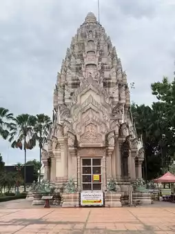 Buriram City Pillar Shrine is located in the heart of Buriram City, Nai Mueang Subdistrict, Mueang Buriram District, Buriram Province. It is believed to have been a resting point for King Rama I and the origin of Buriram. There are two city pillars here. The first pillar (leaning) was erected when the city was first established, while the second pillar was likely erected when the province became Buriram Province. The City Pillar Shrine resembles a prang, with a five-tiered spire and guardian deities of the four directions. Inside the central shrine is the prang, as well as Phra Suea Mueang, Theparak, and Phra Song Mueang. In the mornings at the City Pillar Shrine, there are shops selling delicious fried dough sticks, tea, and soft-boiled eggs. Stop by to pay your respects and have breakfast, it’s wonderful. #Buriram #GetDiscountsNotDependingOnLuck