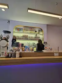The cafe offers a wide selection of coffee and teas. You can ask the staff for recommendations. They're friendly and polite. If you don't like sweets, order a 25% sugar limit and ask for 5% syrup, which isn't sweet at all. They also have a wide selection of matcha teas. Today, I had a matcha latte, which was incredibly strong and unsweetened. The cafe isn't very big, but it's always full of customers. There's plenty of seating, and cute art toys decorate the entire cafe. It's so adorable!