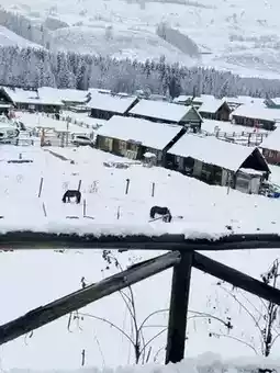 Stayed in a log cabin B&B in the scenic area for 3 nights. The log house was covered with thick snow❄️. When I opened the window, I could see the endless snowy forest.