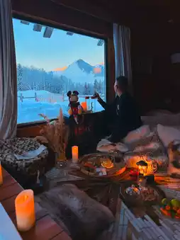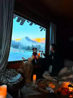 The winter in Hemu, riding horses and rowing boats, is just too comfortable. Jay Chou's Zheng Fanxing matches well with this place, the Dreamy Slumber Forest Cabin, where the bell tolls awaken the dew on the snowy ground.