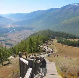 Access within the park is controlled, and there's official sight seeing buses that will drive visitors to as near as possible to Guanyutai. Upon arriving there, we still need to do some climbing to get the best view of Kanas landscape. Climbing the 1068 steps to Guanyutai was both a challenge and a reward. The steps are very well-maintained. You can stop and admire the scenery along way while catching up with your breath and stamina. As we reached the top, the anticipation grew, and reaching the observatory tower felt like a true accomplishment✌️. The view was simply stunning. The shimmering turquoise waters of Kanas Lake spread out below, framed by mountains and dense forests. Looking further, the charming village nestled along the lake's edge added serene touch to the overall landscape. The climb was worth every step for the incredible vistas, offering a perfect blend of natural beauty and peaceful tranquility.