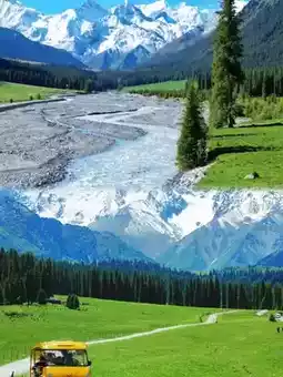 1. Kanas Lake: Kanas Lake is like a dazzling pearl embedded in the land of Xinjiang. The lake water changes color with the seasons and weather, sometimes as blue as a gem, sometimes as green as jade. The surrounding mountains are towering, with snow-covered peaks and lush forests below, like a natural ink painting. Strolling along the lake, breathing in the fresh air, and listening to the sound of the water lapping against the shore, you feel like you're in a fairyland, making it hard to leave.