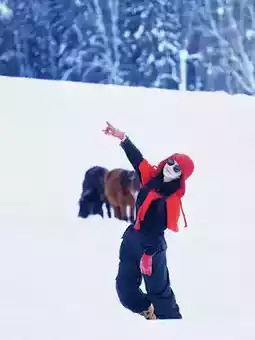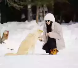 The village is home to many dogs, perhaps accustomed to the constant flow of tourists and their offerings of food. They were all very friendly, posing for photos and allowing people to pet them, often earning treats in return. Adorned with red hats and scarves against the snowy landscape, they made for excellent photo subjects. We strolled along, playing with the dogs, occasionally lying down on the snow-covered ground.