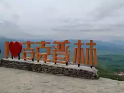 - The monumental "I❤️Jikebuling" art installation crowns the grassy slope, framing the majestic ridges of distant peaks;