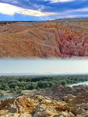 ▫️ Enter the scenic area before 7 pm, head straight to the third viewing platform to shoot colorful hills + Irtysh River in one frame