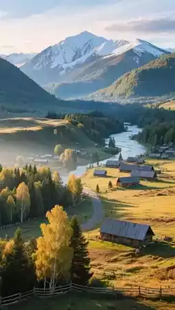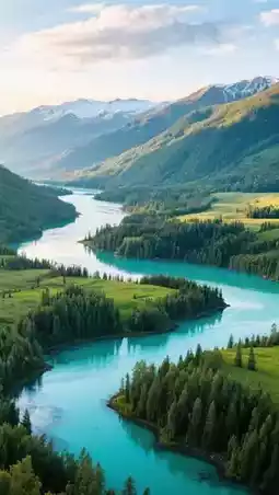 📌 Style: Nordic secret realm × Alps on the map of China × Tuva culture