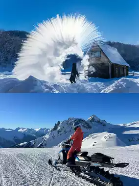 ‼️Here you can also find the same powder snow as in Hokkaido, so friends who want to ski must not miss it~~ Stay overnight in a cozy snow cabin✨, with warm and inviting decor paired with the snowy forest view outside the window. You can gather around the stove to brew tea, soak in hot springs, and take photos—the romantic atmosphere and healing power are both off the charts!