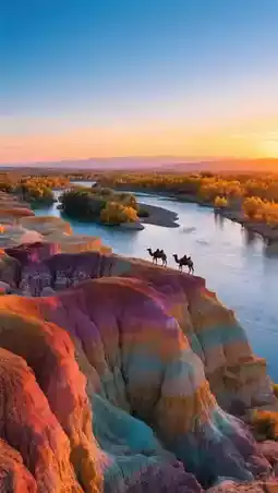 The sunset dyes the Yadan landforms fiery red, the Irtysh River flows quietly—dynamic and static, warm and cool contrast, this shot can be your desktop wallpaper for three years.