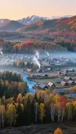 A little-known village on the China-Kazakhstan border, Tuvan wooden houses hidden deep in the forest, morning frost still unmelted, like stepping into a Nordic fairy tale.
