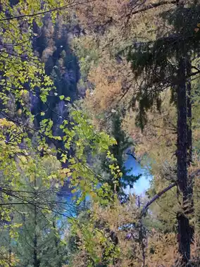 The hiking route from Moon Bay to Wolong Bay is the essence of Kanas✨Walking along the boardwalk, the Kanas River winds through the valley like an emerald ribbon💎The iconic S-shaped curve of Moon Bay is spectacular when viewed from the platform📸Along the way, you’ll see the most beautiful autumn reflections—blue sky, white clouds, and colorful forests mirrored in the clear water, stunning beyond words! Hiking to Wolong Bay, you can see the river bend’s sandbar shaped like a coiled giant dragon🐉The dragon shape is incredibly lifelike!