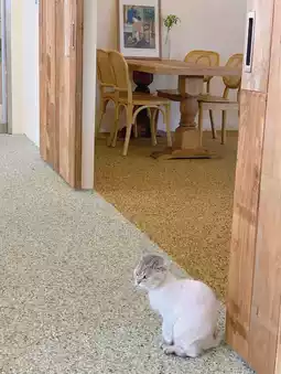 When you enter the cafe, you are greeted by a cute cat at 'Lums' in Busan🐱 They don't seem to be wary of people! Plus, there is a black and white camera at the entrance of the cafe, so you can take a memorable photo. ◡̈