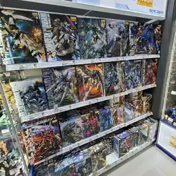 While wandering around Centum City's Shinsegae district, he came across a fairly large Gundam figure store, which intrigued him, so he went in.