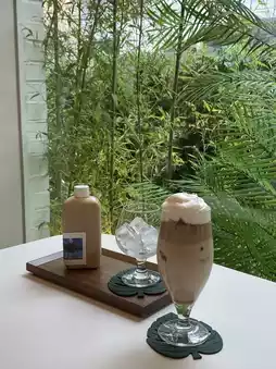 The walls inside the cafe were covered in grass, so it felt like I was in a grass forest cafe.