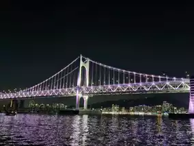 At night, the lights on Gwangan Bridge turn on, and Gwangalli Beach