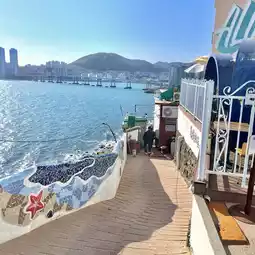 The view is so great that it's a great place to take pictures here and there. I definitely recommend going on a nice day! The sea really shines like an emerald color. You can see the beautiful Busan sea.