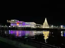 The Bay also has photo zones, so it's great for taking pictures and it's pretty! Even after business hours, the yacht tree lights were on:)