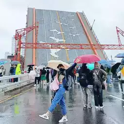 It started raining before the bridge opened, but many people came to witness this unique feature of Busan.