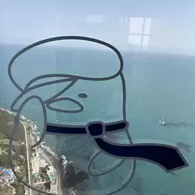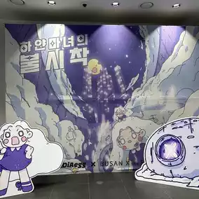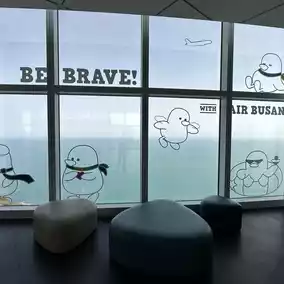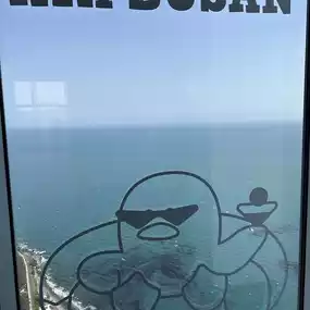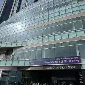 The 100-story Haeundae building offers a clear view of the sea during the day. Inside, there is a Busan mascot, Seagull, checking in. We always thought it was a penguin.