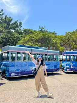 At the entrance of Taejongdae, I took a picture with the Danubi train,